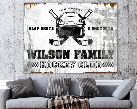 Custom Family Last Name Sign Ice Hockey Art Modern Vintage Etsy