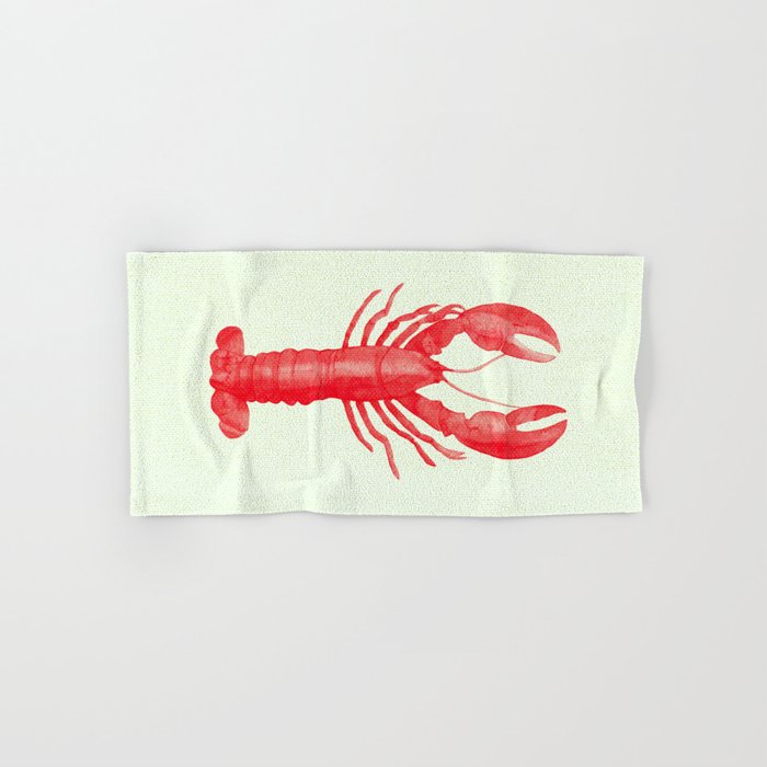 Pink Lobster On Linen Nautical Decor Hand Bath Towel By