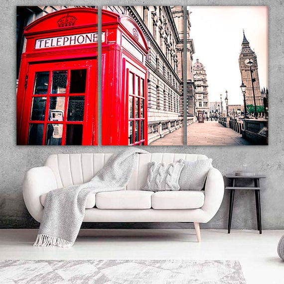 Old London On Canvas London Art London Decor Red And Black Etsy