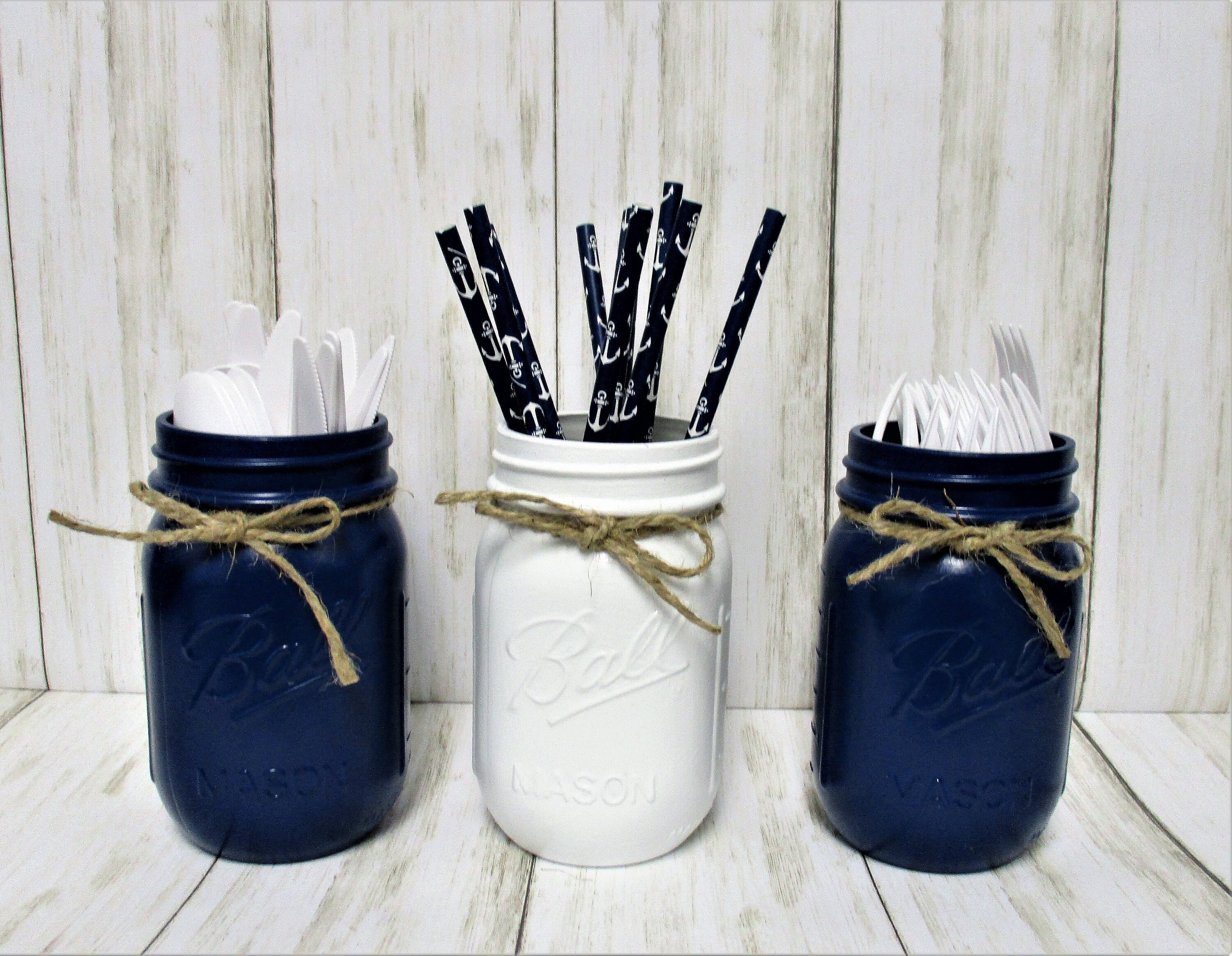 Amazon Com Painted Mason Jar Decor Set Of 3 White Mason Jars