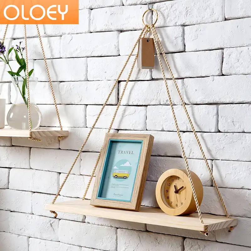 Nordic Simple Solid Wood Wall Decoration Sling Rope Rack Flower