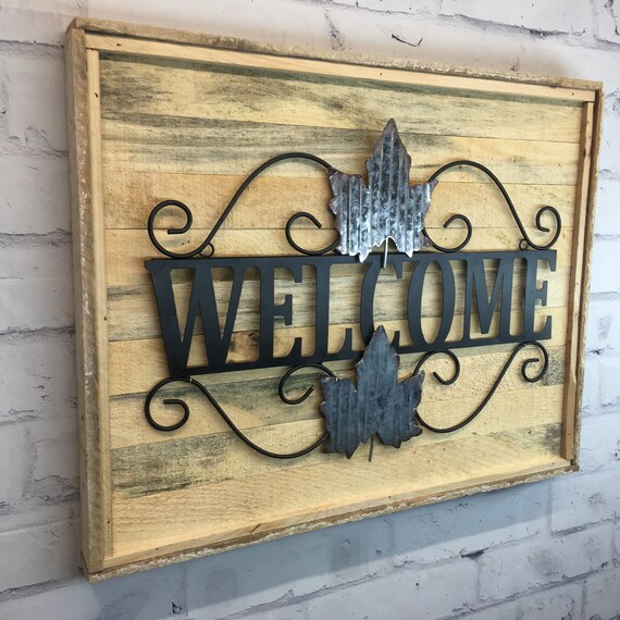 Rustic Metal Welcome Wood Wall Decor Etsy