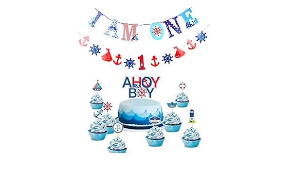 Ahoy Nautical Birthday Party Cake Decorating Kit Cake Topper