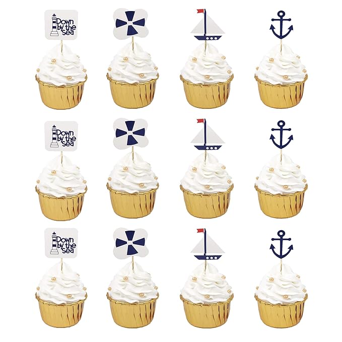 Pack Of 24 Nautical Cupcake Pick Toppers Decorations Cake