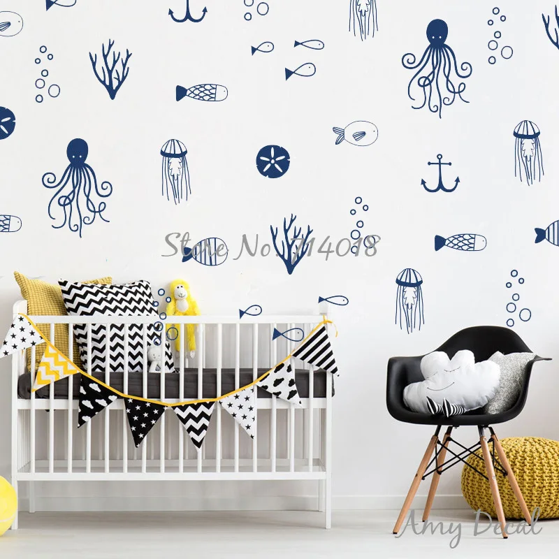 50 Pcs Sea Life Wall Decals Cute Nautical Decals Ocean Wall