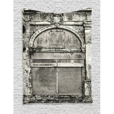 Rustic Decor Wall Hanging Tapestry Monochrome Old Closed Store