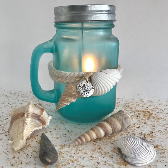 Glass Candle Holder Sea Glass Art Beach Decor Sea Glass Crafts