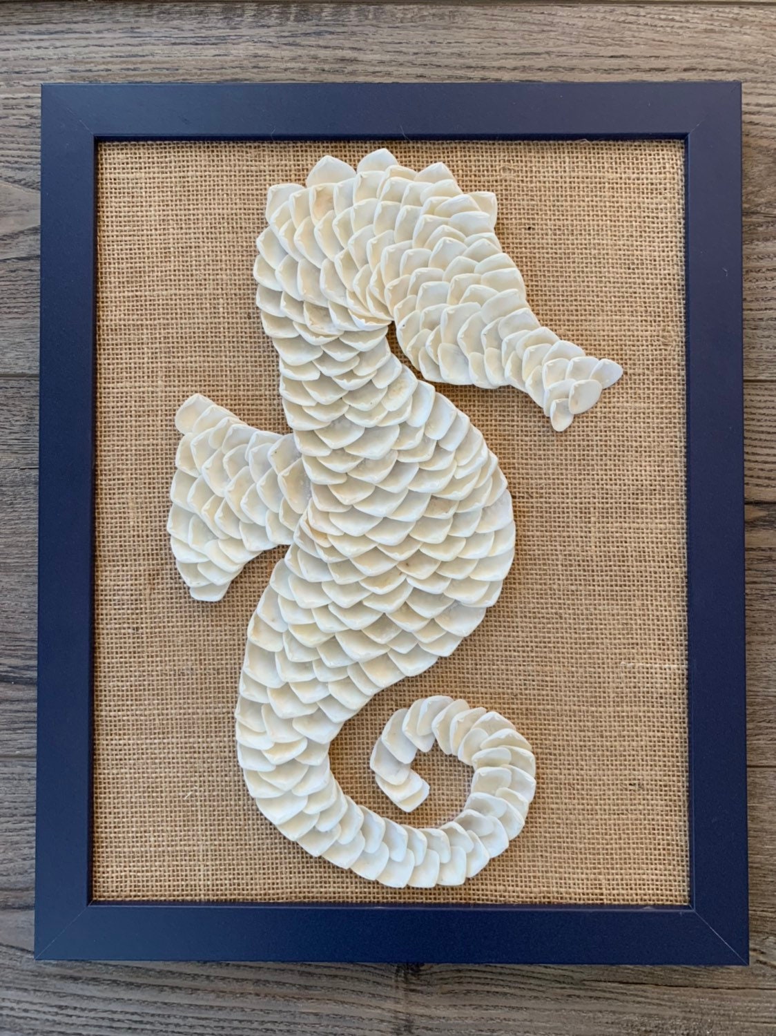 Shell Seahorse On Burlap Seahorse Art Seahorse Decor Burlap Etsy