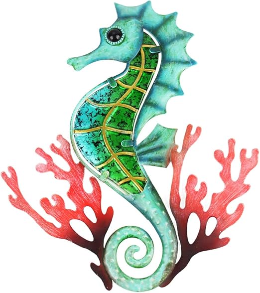 Amazon Com Hongland Metal Seahorse With Coral Wall Decor Indoor