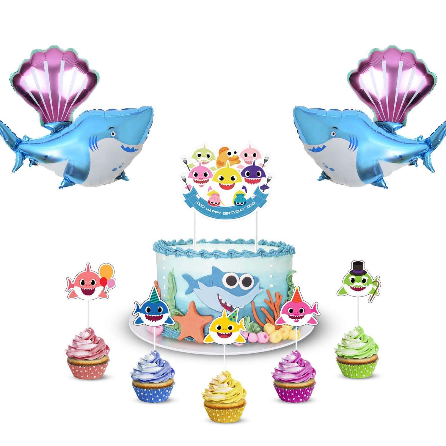 Umiss 55pcs Baby Shark Party Supplies Banner Balloons Cupcake