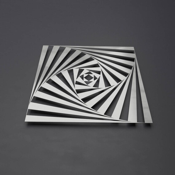 Op Art Metal Wall Sculpture Geometric Metal Wall Art Square Etsy