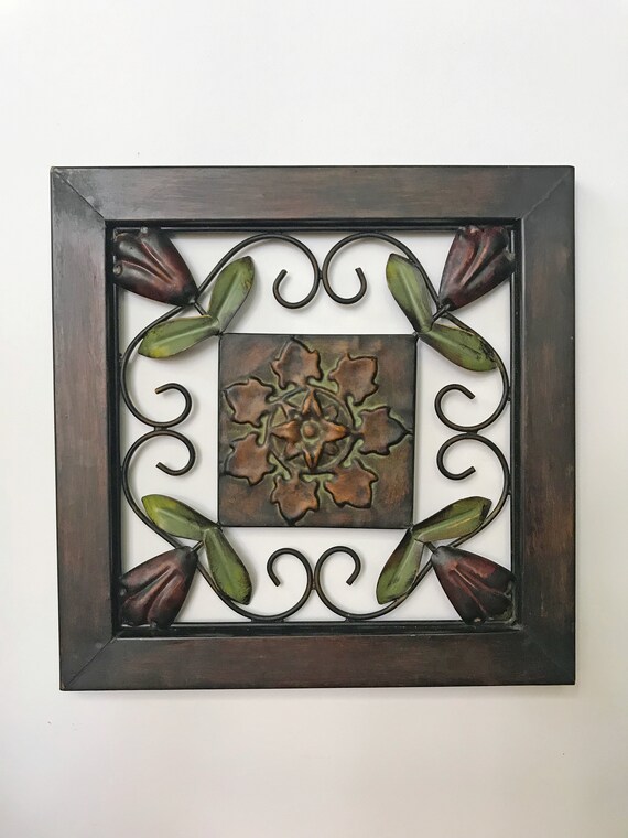 Square Metal Wall Decor Plaque Hand Painted Vintage Etsy
