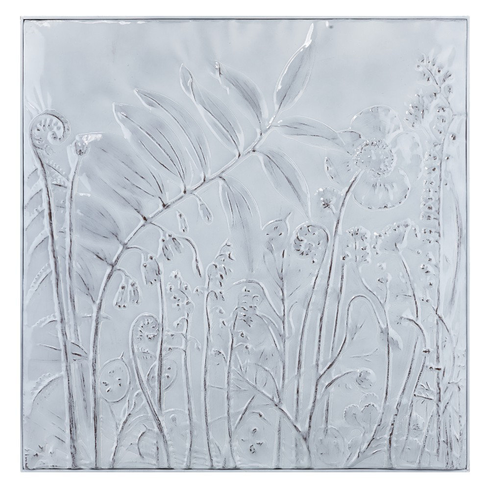 Wall Floral Plaque Glazed Textured Plates Large Square Metal
