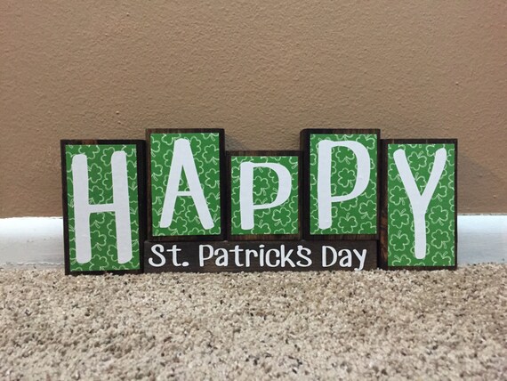 St Patrick S Day Theme Home Decor Wood Blocks St Etsy