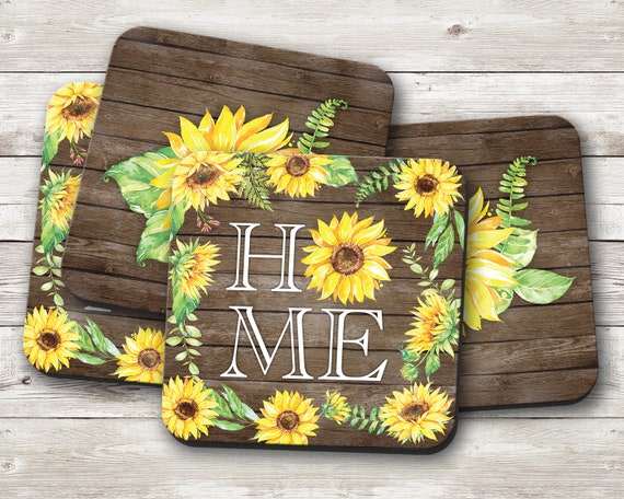 Sunflower Coaster Set Sunflower Home Decor Rustic Coasters Etsy