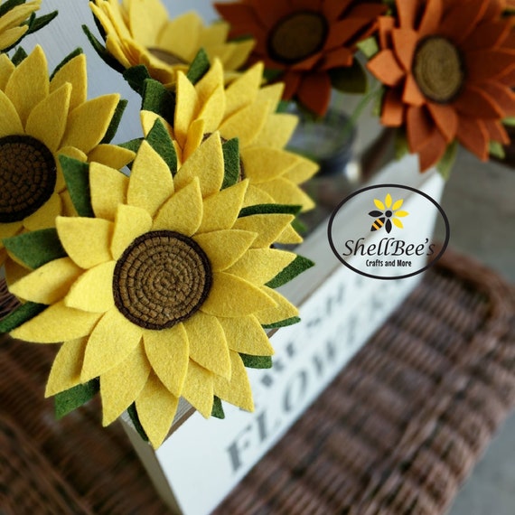 Single Stem Yellow Sunflower Sunflower Home Decor Felt Etsy