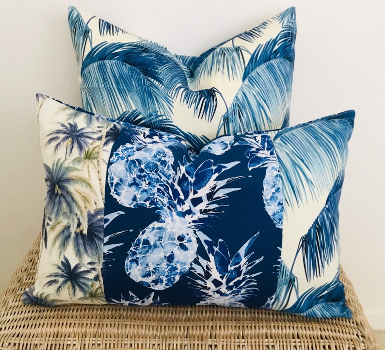 Tommy Bahama Jacquard Palm Leaf Cushion Covers Blue And White Etsy