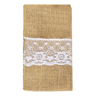 1pcs Jute Hessian Burlap Linen Lace Cutlery Holder Vintage