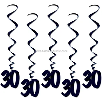Black Hanging Whirls Decorations 30th Birthday Age 30 Party
