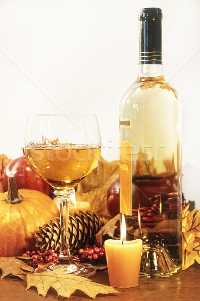 Festive Decorations With Wine And Candles For Thanksgiving Stock