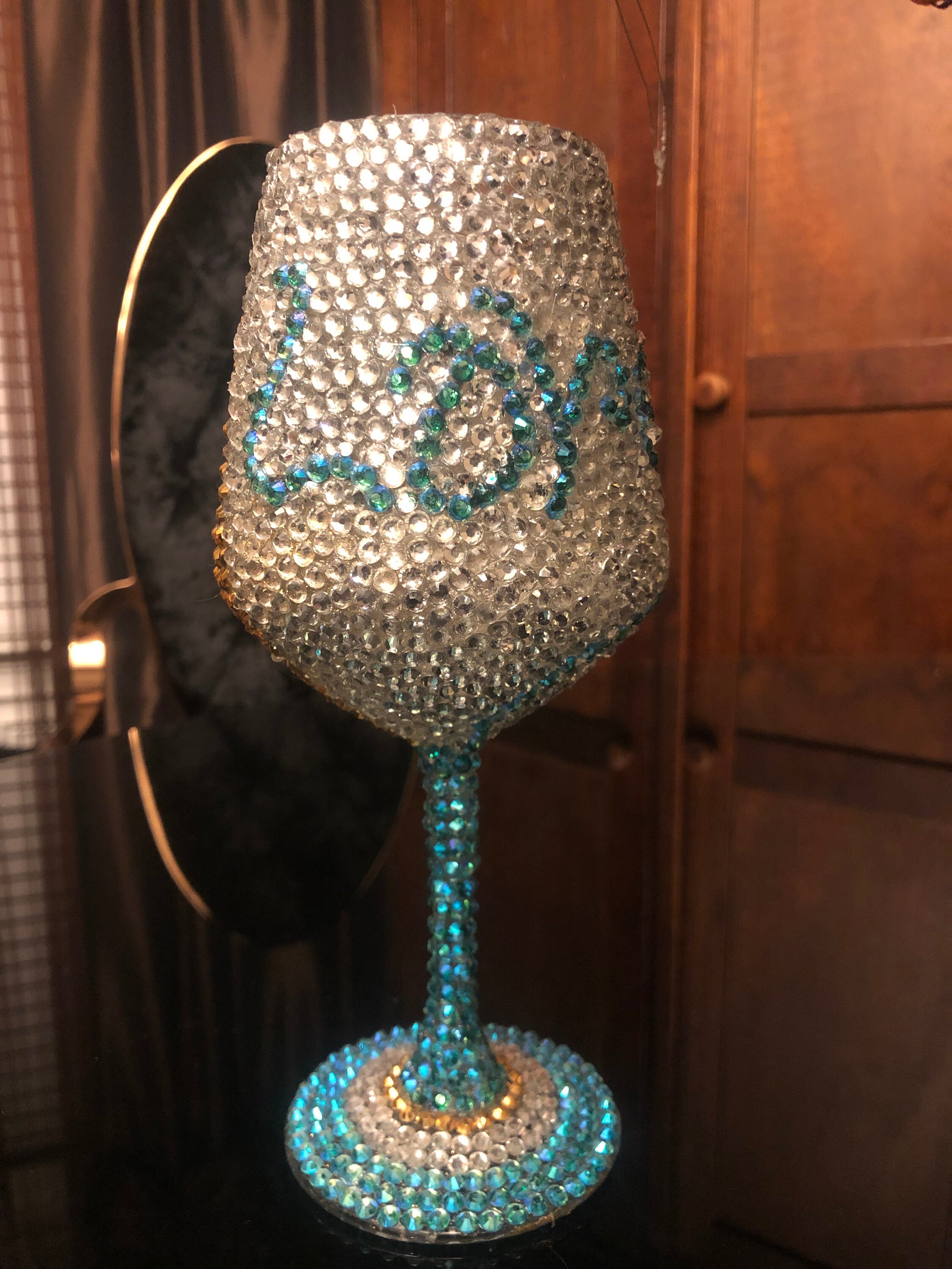 Large Wine Glass Custom Decorate With Glitter Stem And Etsy
