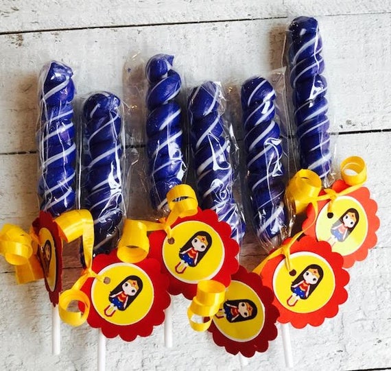 Wonder Woman Party Favosr 6 Lollipops Wonder Woman Birthday Etsy