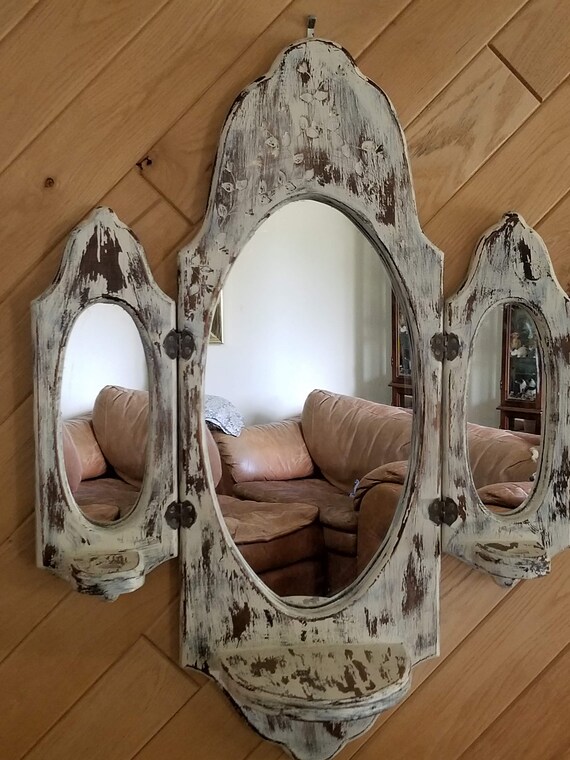 Beautiful Vintage Triple Mirror With Shelves 1970s Home Decor Etsy