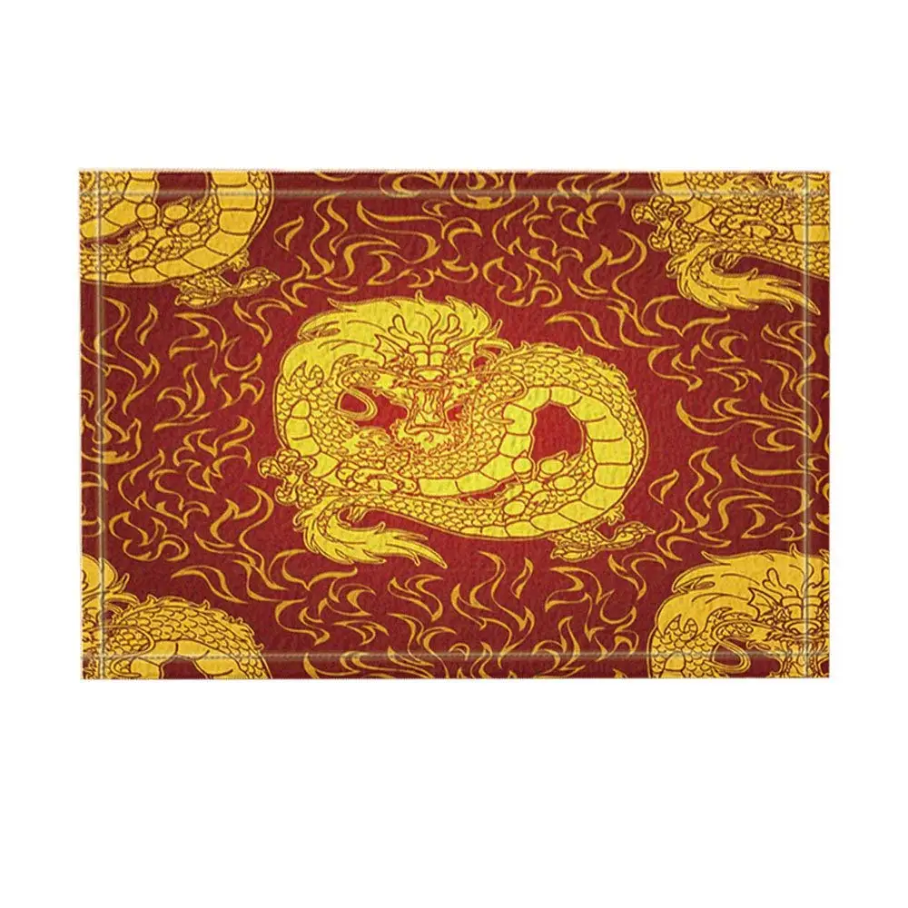 Asian Chinese Dragon And Fire Home Decor Bath Rugs Non Slip