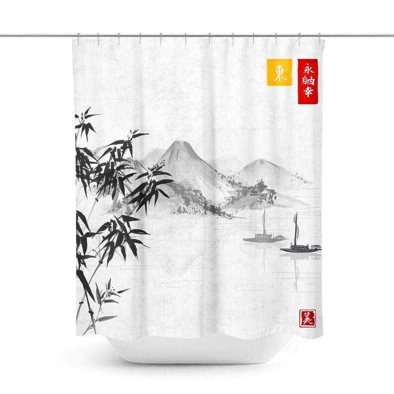 Asian Shower Curtain Oriental Shower Curtain Asian Bath Etsy