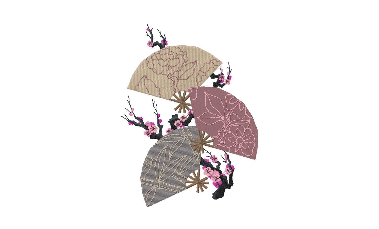 Asian Bathroom Decor Towels Pair Fan Trio Embroidered 15 X
