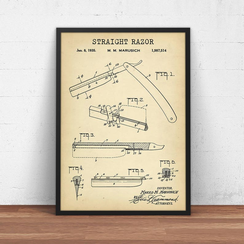 Barber Razor Patent Printable Barber Shop Decor Antique Etsy
