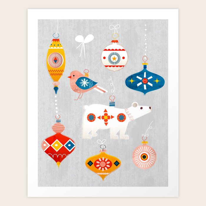 Christmas Vintage Decorations With Bear And Bird Art Print By
