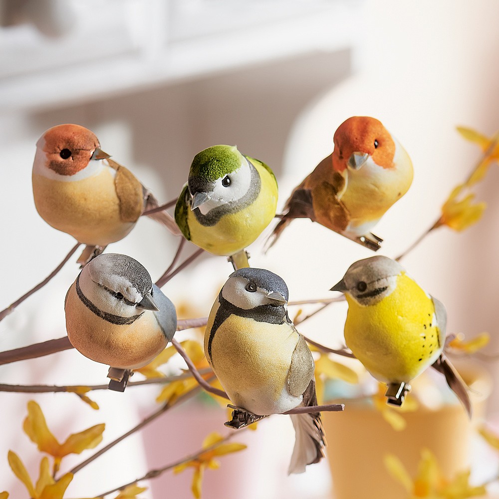 6 Feathered Clip On Bird Decorations Decorative Accessories
