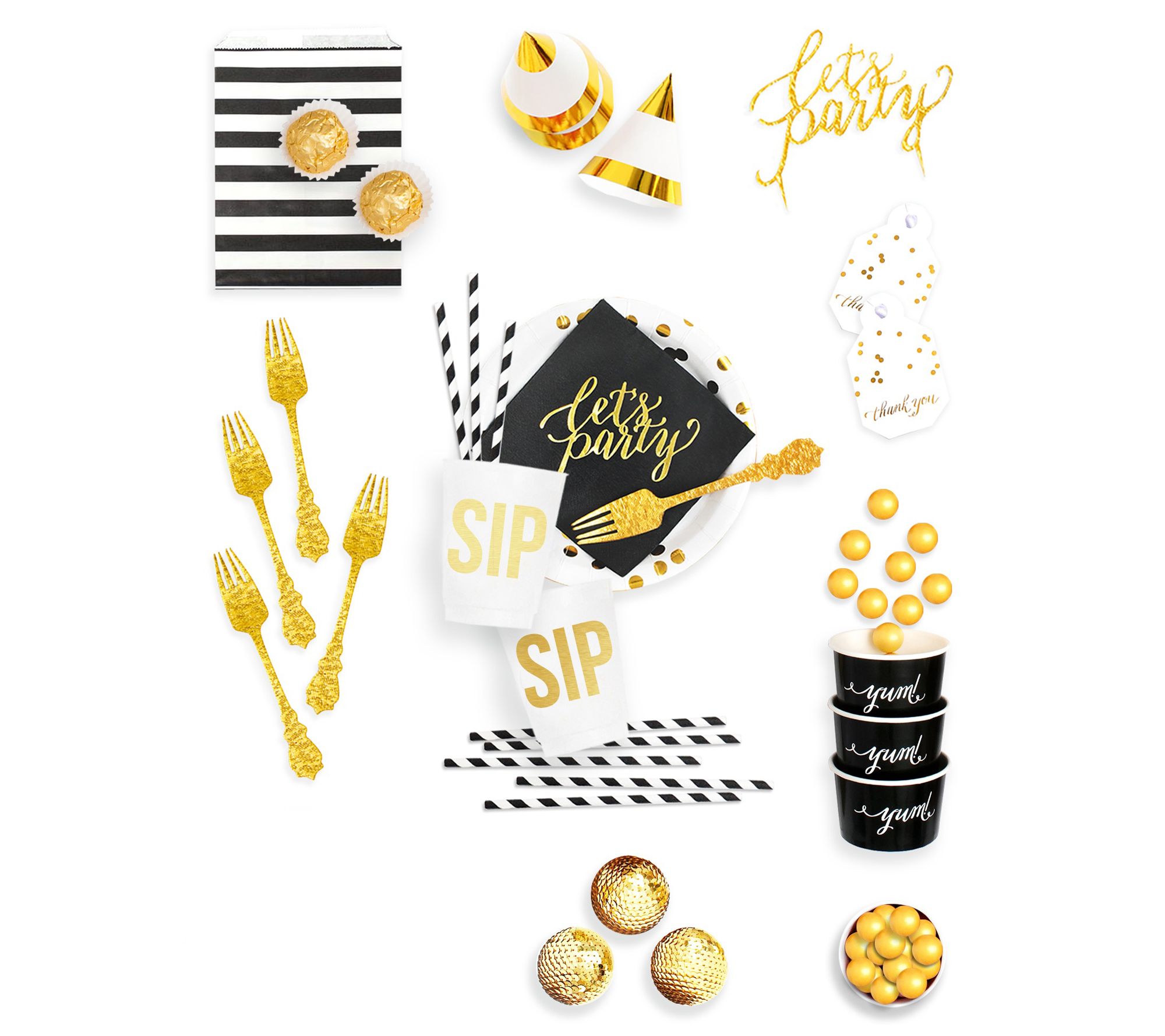 Party In A Box Black Gold Party Supplies For 24by Crated Qvc Com