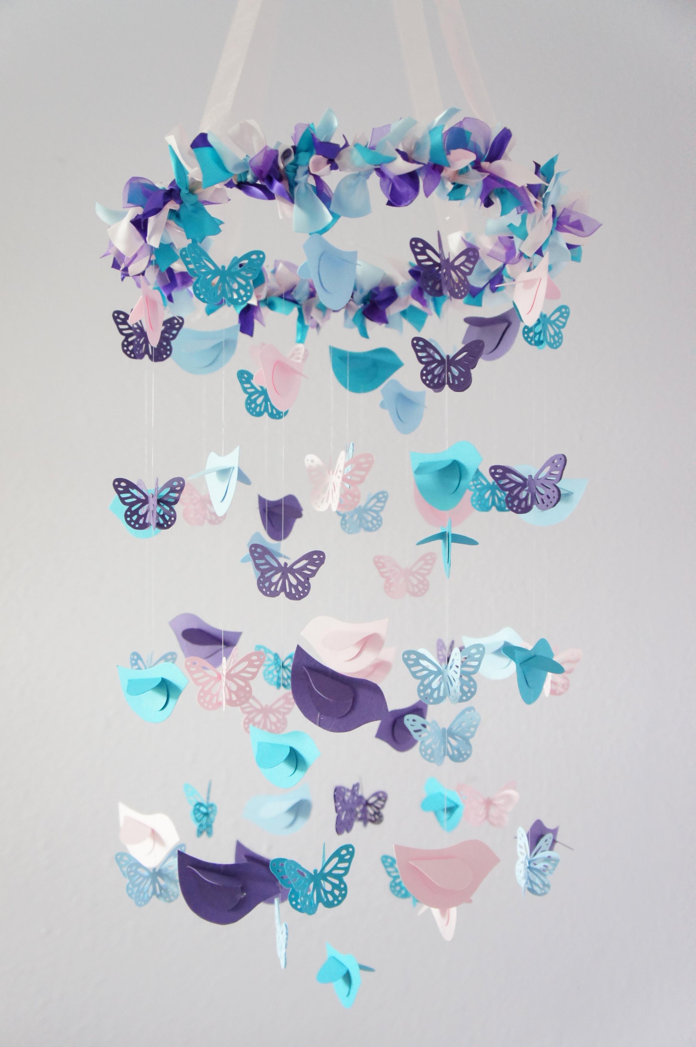 Nursery Mobile Blue Pink Purple Birds Butterflies Nursery