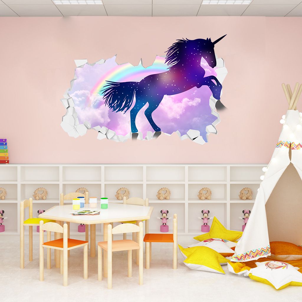 Multicolor Unicorn Wall Decals Pvc Cartton 3d Wall Sticker For