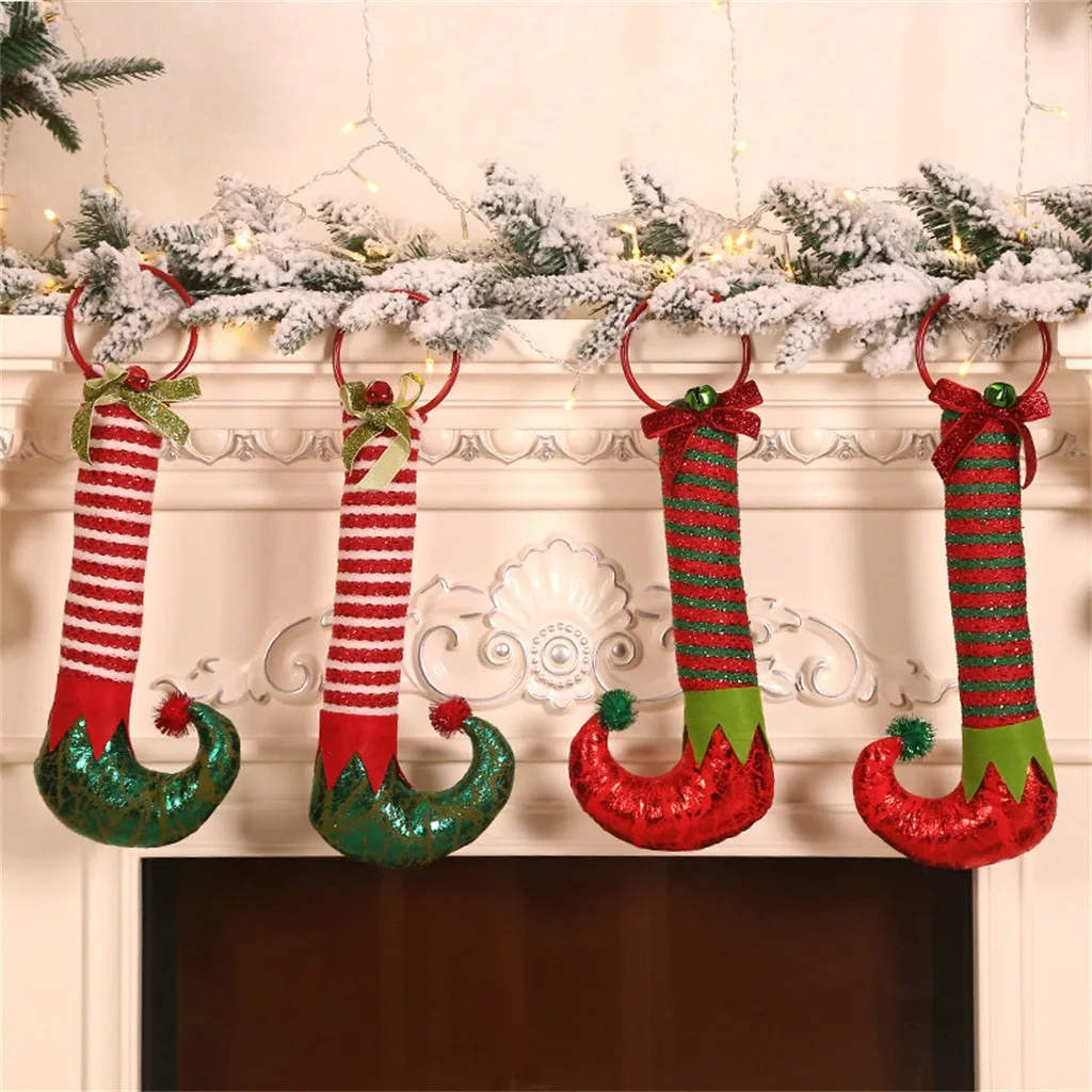 Gift Christmas Elf Leg Picks Plush Stuffed Feet With Elves Shoes