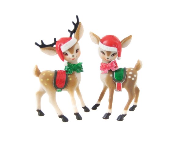 Christmas Reindeer Figurines Reindeer Ornaments Plastic Deer Etsy
