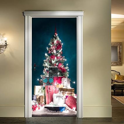 Door Wall Mural Wallpaper Christmas Tree Light 3d Vinyl Removable