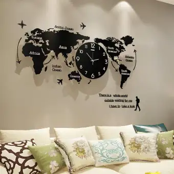 Oversized Mute World Map Shape Wall Clock Home Digital Quartz Wall