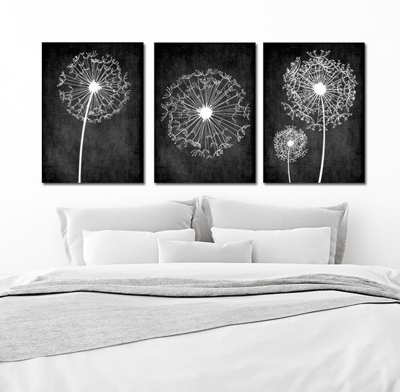 Dandelion Wall Art Dandelion Decor Black White Bedroom Etsy