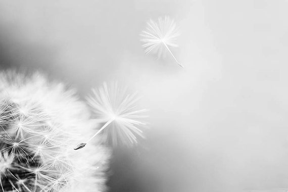 Gray And White Wall Art Grey Dandelion Decor Dandelion Etsy
