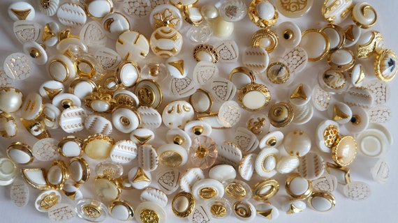 Mix Buttons Set White Gold Different Decorative Buttons Small Etsy