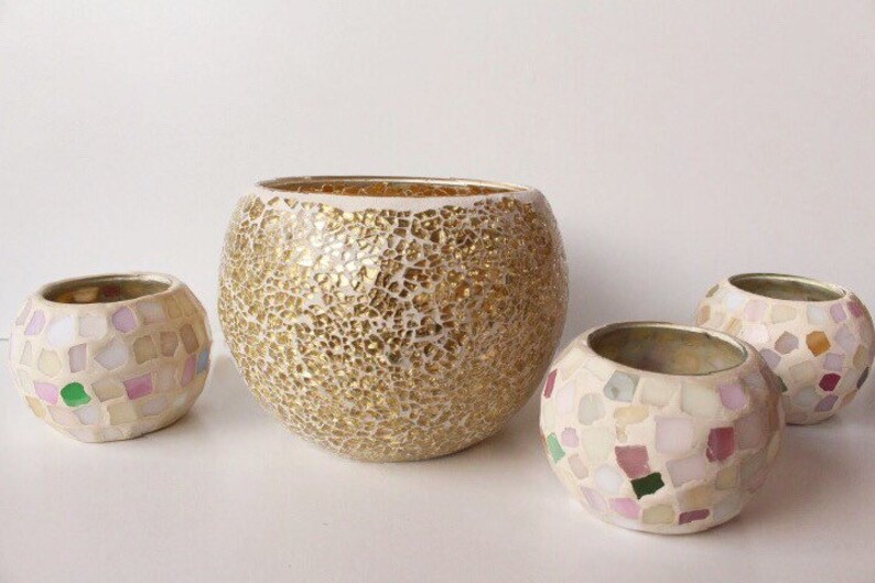 Decorative Candle Holders Votive Bowls Mosaic Candle Etsy