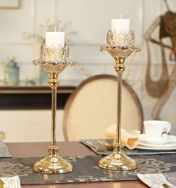 Gold Home Decor Crystal Candle Holder Centerpiece Bowl Table