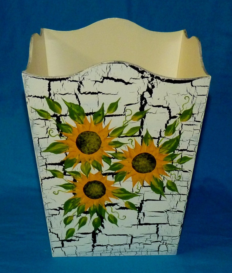 Wood Trash Can Decorative Hand Painted Waste Basket Sunflowers Etsy