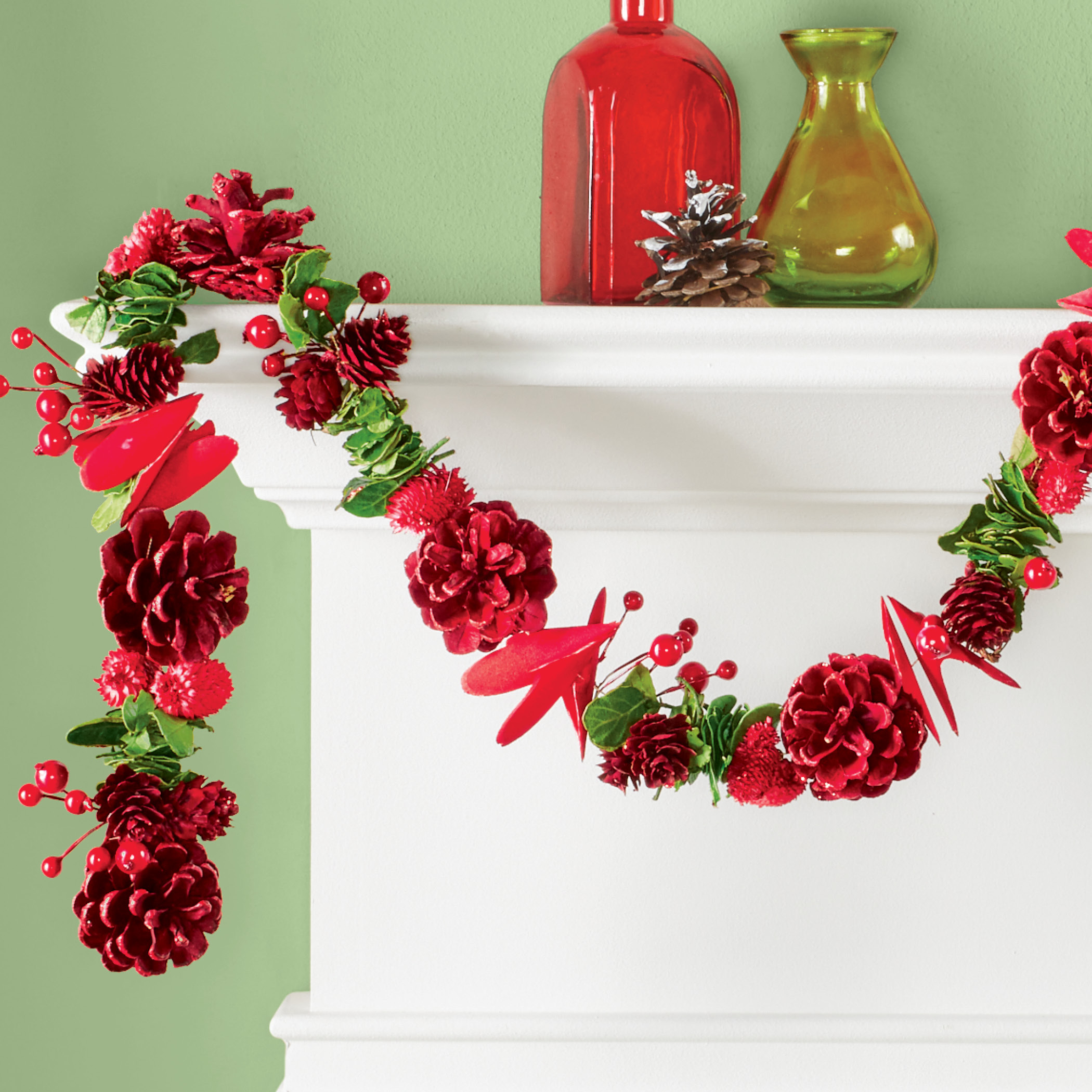 Red Pinecone And Berries Decorative Garland Collections Etc