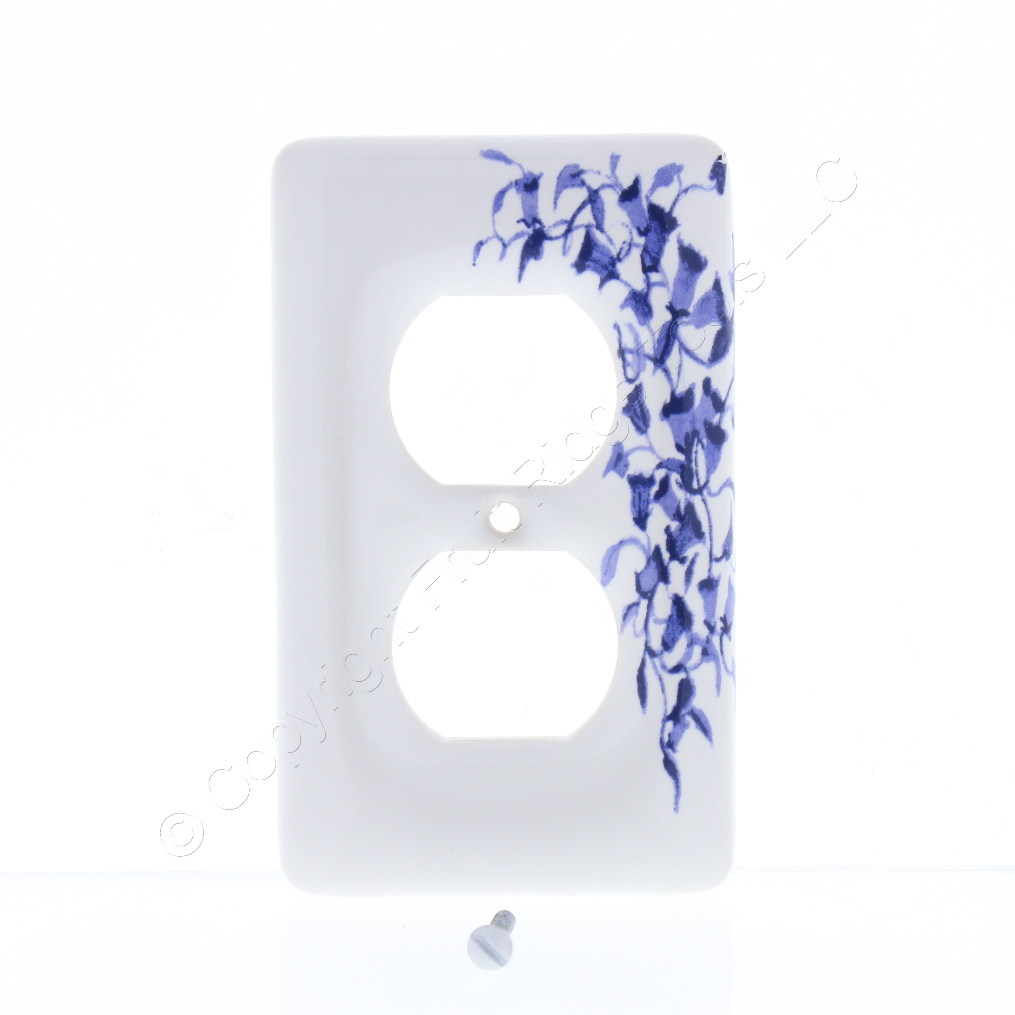 Leviton Porcelain Decorative Blue Vine Flower Receptacle Wallplate