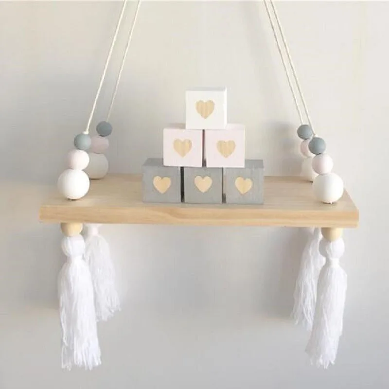 Ins Nordic Style Wooden Storage Racks Kids Room Decorative Wall