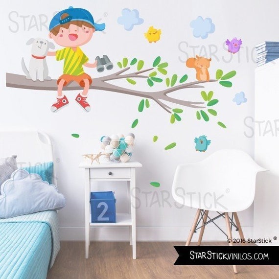 Decorative Wall Decal Boy On The Tree Branch Etsy